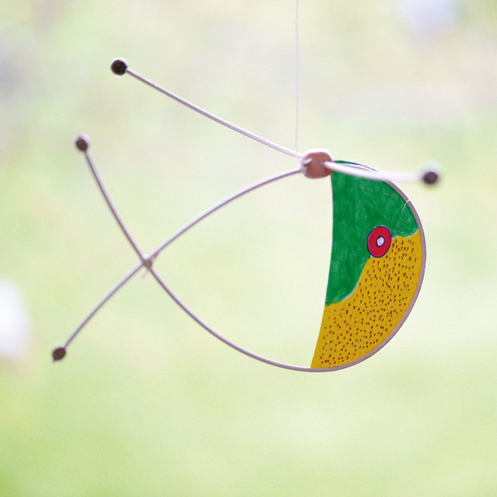 À la fois élément décoratif, objet vivant ou chargé de mystères, le mobile est parfois associé à certaines superstitions lui prêtant le pouvoir de faire fuir les voleurs ou de chasser les fantômes. Construis ton propre mobile en forme de poisson, avec différents matériaux qui te permettront de comprendre les notions d’équilibre et de mouvement.